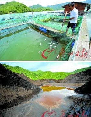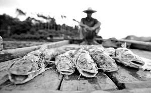 渔民打捞上来的被污染的死鱼