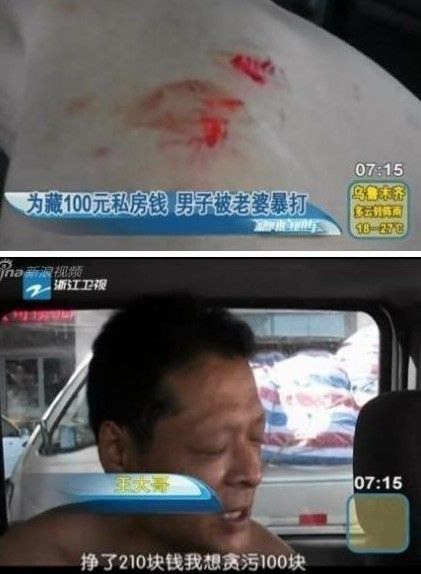 ——【近日,洛阳王大哥向警方求助,说自己遭遇家庭暴力,被老婆打得一身伤,原因是他偷藏了100元私房钱。】