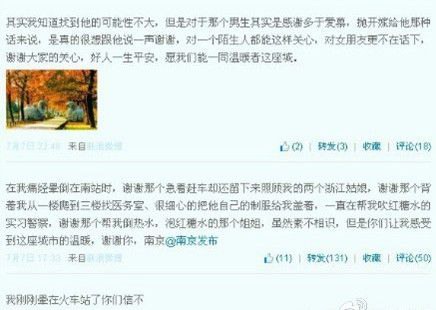——【7日,南京大学大一女生小袁因痛经晕倒,一实习警察顾不上赶车,背着她狂奔找医务室,还为她晾糖水、盖衣服,细心照顾……备受感动的小袁微博开玩笑表白。这位男生,你看见爱的讯号没?】