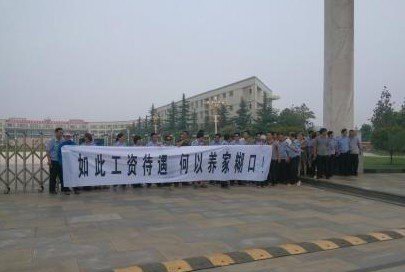 7月8日,济源市城管监察支队的数十名队员集体到市政府大门口,打出“如此工资待遇,何以养家糊口”的横幅,反映工资待遇较低问题。