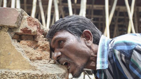 开挂阿三吃砖头上瘾每天吃3公斤