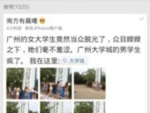 “广州的女大学生竟然当众脱光了,众目睽睽之下,她们毫不羞涩。广州大学城的男学生疯了。”