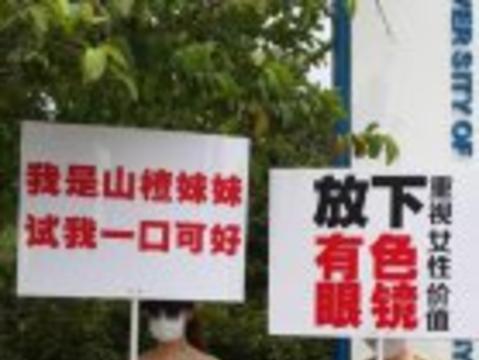 “‘山楂妹妹’到底是谁?”4月21日在广州出现一群公开裸体反对就业歧视的“女大学生”,再次将妇女权利倡导活动拖入“激进”的争议,然而,真相似乎是,这些女生不过是受雇而来,她们和幕后公司都不真正关心女权主义,只是借为商业营销造势。