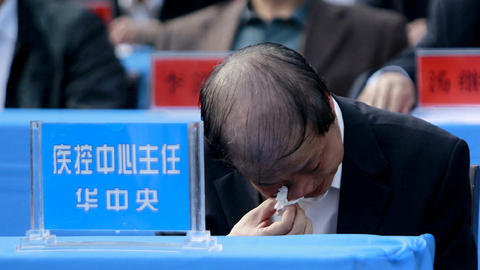 免职决定宣读后,主席台上的被问政官员表情严峻起来,唯有华中央突然用手捂住了眼睛。