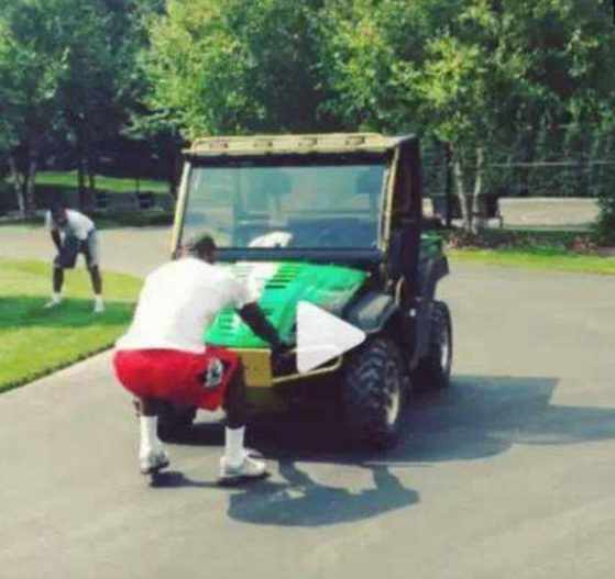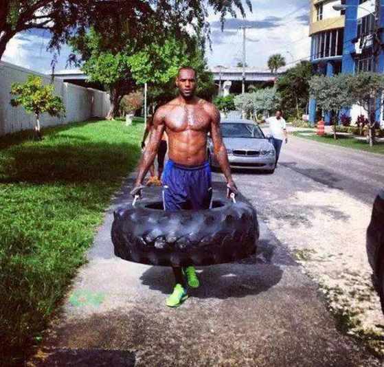 NBA巨星詹姆斯的日常训练,这么大的轮胎,轻松托起。