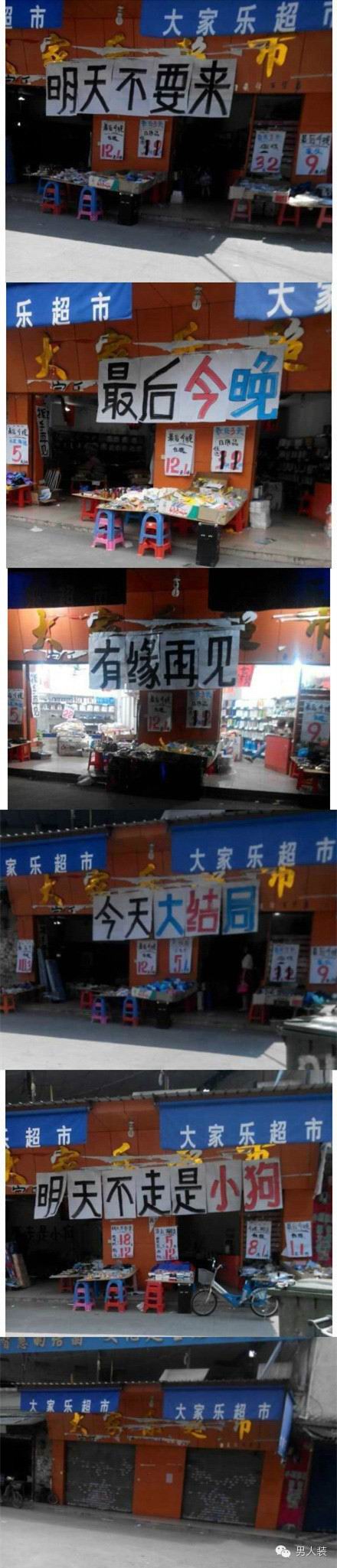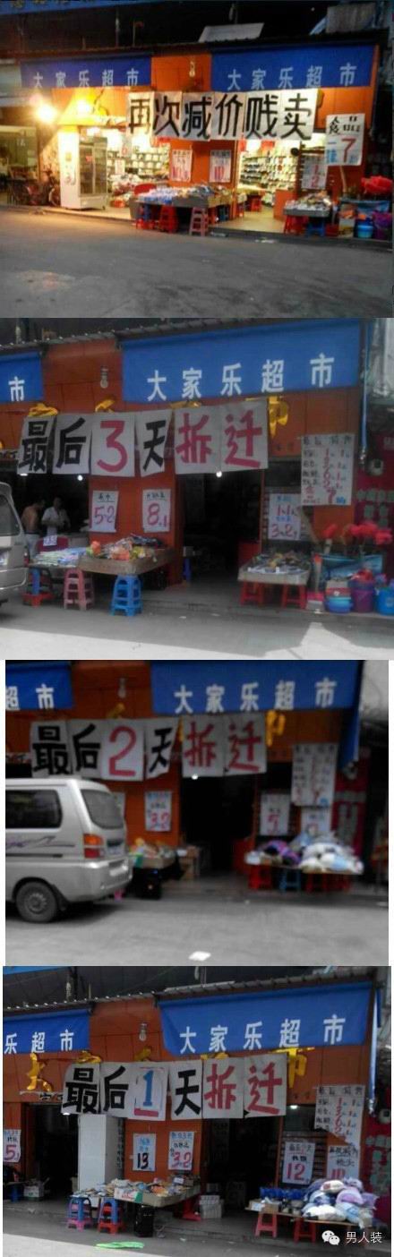 我们总能见到一些没有性欲信誉的商人,门口横幅永远是减价甩卖、拆迁最后3天,但你却发现丫就这么坚持了3年.....
