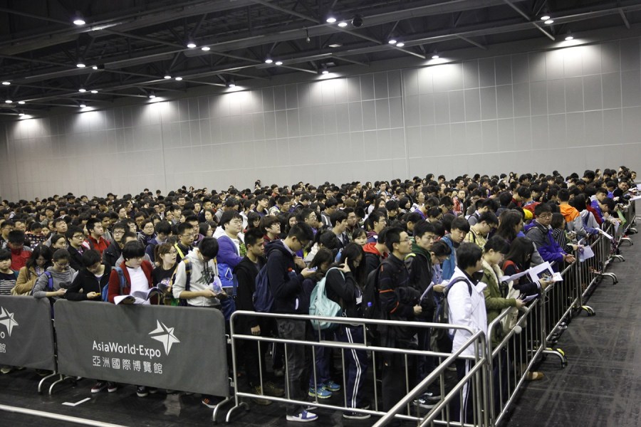 1月25日,香港,在亚洲国际博览馆考场,近万名考生参加了有“美国高考”之称的SAT考试。近年来,随着越来越多中国学生选择到美国读本科,作为申请美国高校重要参考的SAT考试,在中国形成热潮。由于中国大陆没有考点,中国香港就成为了许多内地学生参加SAT考试的首选。而香港的最大考试场所——亚洲国际博览馆,由于考场设在博览馆的地下区域,这个能容纳上万人的偌大场地,被考生戏称为“万人坑”。CFP