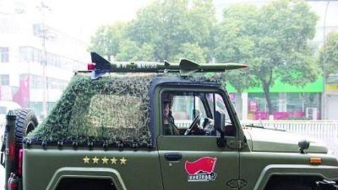 一男子改装吉普车上装“导弹”