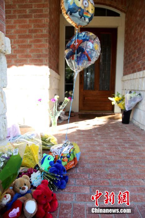 当地时间2月4日,美国华裔工程师一家四口惨遭灭门的住宅前,社区居民和朋友送来的慰问鲜花、小熊玩具、气球和纪念卡。