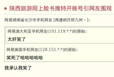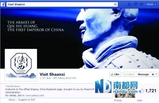 ——【陕西省旅游局近日公开宣,该局已在Facebook、Twitter等国际知名社交网站上建立专页,引发网友围观。但针对多位网友在评论中抱怨链接打不开的问题,该局一名工作人员回应称,该专页所面向的人群并非国内游客。】