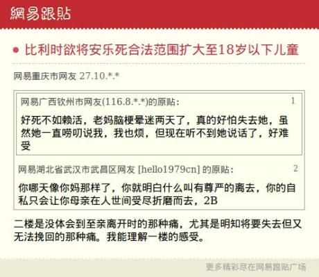 ——【比利时议会近日通过了没有年龄限制的儿童安乐死法案,目前该国已成为全世界第一个允许所有年龄段的绝症病人能安乐死的国家。布鲁塞尔大主教利昂纳德所代表的保守力量反对此一法案,称这是“不道德”。】