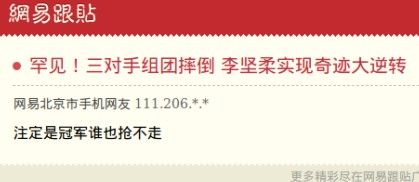 十二、“李坚柔夺冠不能用幸运来形容,天道酬勤,她付出的努力,老天都会帮她。”