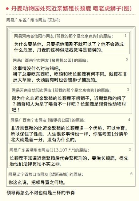 ——【哥本哈根动物园早前处死一头因近亲繁殖而出生的长颈鹿,引发全球哗然。近日,丹麦另一家动物园也表示将会处死一头混种长颈鹿,它有一个同父异母的纯种兄弟;园方将引进雌长颈鹿与纯种兄弟交配,为免出现近亲繁殖的风险,混种兄弟就需要被处死。巧合的是,这头面临处死的长颈鹿名字与早前被处死的相同,都叫马里乌斯。】