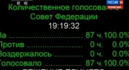 ——【当地时间本月1日,俄罗斯议会上议院通过了普京提出的在乌克兰动用军事力量的提议,直到乌克兰形势恢复稳定。普京的提议在表决中获得一致通过。对此俄罗斯副外长表示,这并不意味着俄罗斯会立即派出部队。】