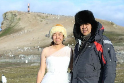——【近日张昕宇和梁红这对新人在南极长城站举行了一场“浪漫到极点”的婚礼,结束了他们长达28年的恋爱长跑。这是第一场中国人在南极举办的婚礼。】