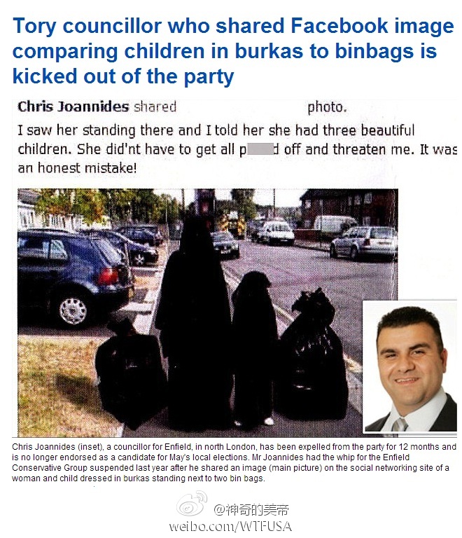 英国保守党政客在Facebook上转发穆斯林图片段子