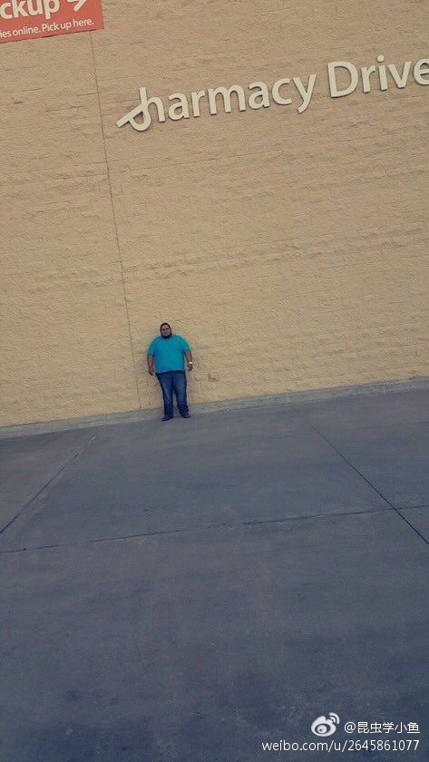 这位老兄在Facebook上说他在这个地方站了四个小时了,就是等着P掉下来,这样他就可以起诉沃尔玛了。