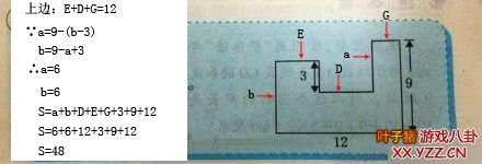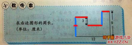 原帖由 Daybreak1234567 于 2012-11-1 16:42 发表 把图形补完整(长方形 长:12 宽:9) 分析可得可得原图形周长=(12+9+3)X2=48