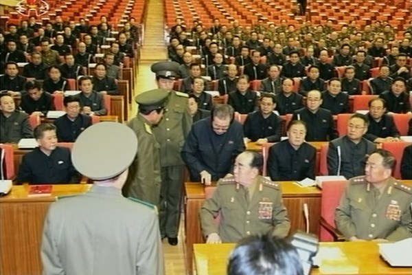 朝鲜中央电视台9日公开了前任朝鲜国防委员会副委员长张成泽被抓获的画面。韩联社/朝鲜中央电视台