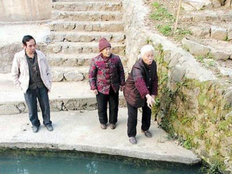 由于落水老人有些重,加上衣服浸了水显得更重,韦试了几次仍无法将老人托上岸。危急时刻,正巧有两女一男三名年轻人路过,见此情景,这几位年轻人立即跑过去将两名老人一同拉上了岸。