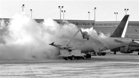芝加哥,暴风雪过后,飞机在除冰,数千航班取消。