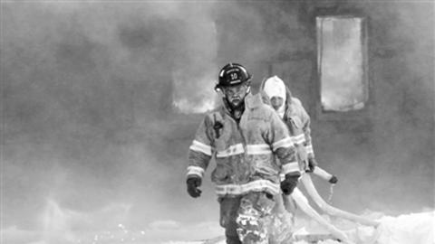 印第安纳州,消防员在皑皑白雪中救火,上演冰与火。