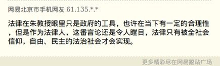 ——【近日,著名法学家、北大教授朱苏力在参加某论坛时说,法律只不过是另外一种政府规制的措施。因此,要防止过分迷信法治,觉得政府管的是错的,只有交给法律去管才是对的。司法腐败和政府寻租是一样的,千万不要以为法律就不是政府。】