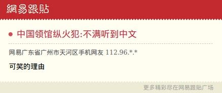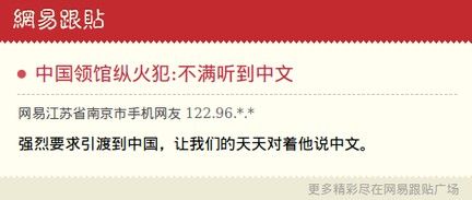 “一直听到很多声音,所有声音讲的都是中文,所以迁怒于中领馆。”