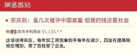 ——【2014年元旦,娃哈哈集团董事长宗庆后发表演讲称,应该对老百姓的收入定一个标准,收入标准没有达到之前,要少收一点儿税,否则永远富不了。】