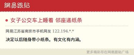 ——【2日,家住渝北的小王车上打盹,醒来后,意外地在她外套帽子里发现有人给她塞了张纸条,上面潦草地写着温暖的话语。小王非常感动,她隐约记得邻座男生上车后一直在写着什么。因为怕男友误解,她还没跟男友提这事。】