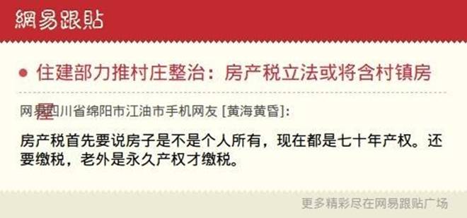 ——【媒体报道,接近住建部的一位人士介绍,目前在房地产税立法的研讨上,已开始考虑在理清产权属性背景下,把农村集体土地上的合法房产纳入房地产税税收体系的可能性。】