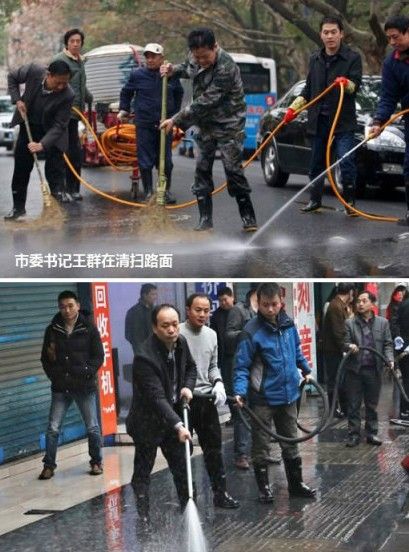 ——【近日湖南常德市委书记王群、市长周德睿等带队扫街1.7公里,媒体报道称“市民大加赞赏”。 】