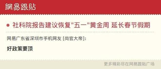 “建议增加2-6天法定假日,以期恢复‘五一’黄金周,加长‘春节’放假时间等。”