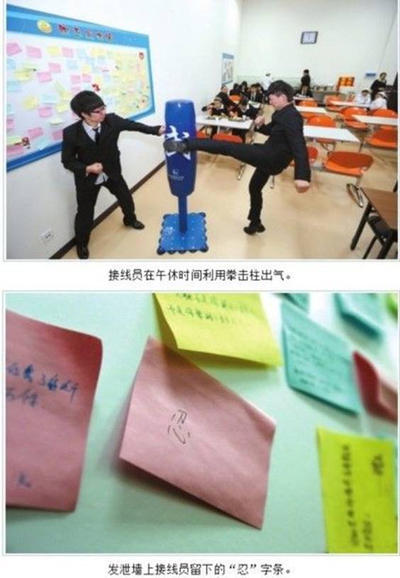 ——【北京铁路局(微博)12306客服中心食堂设了一面职工发泄墙和拳击发泄柱,肚子里有火时可来“打打人”、“骂骂人”。墙上还贴满了红红绿绿的便签条。】