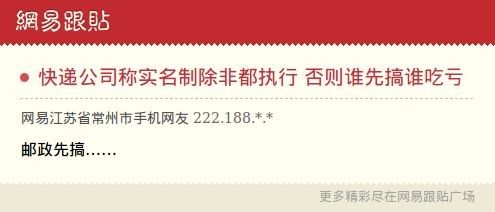 ——【一些快递公司坦言,快递“实名制”是行业趋势,但目前经营环境、法律支撑和信息安全保护等方面的实施条件并不具备。】