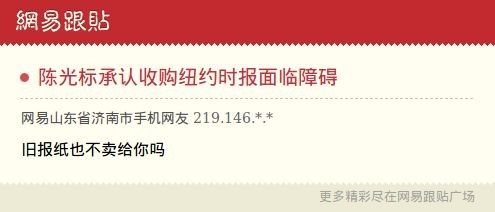 ——【陈光标本周二坦承实现收购《纽约时报》计划面临障碍。他在发布会上还表达了想在美国接工程的愿望。】