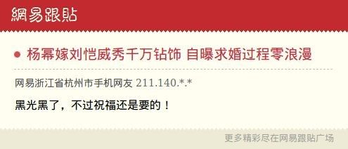 ——【杨幂与刘恺威今日巴厘岛大婚,孕妇装的“刘太”杨幂率先大秀巨钻求婚戒指。大婚之日的她还不忘在微博自黑一把。】