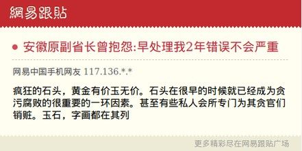 ——【据报道,安徽省原副省长倪发科痴迷玉石,对好的和田玉来者不拒,其收受的玉石占受贿总额近八成。倪发科说,他被喜好冲昏了头脑,越陷越深,并抱怨组织为何没能早点提醒、处理他,那样他犯的错误就更小了。】