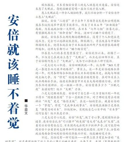 “安倍就该睡不着觉。”