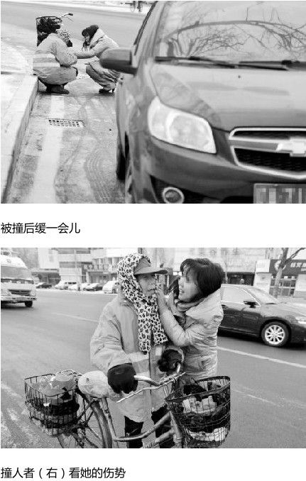 ——【日前,沈阳街头一位年过6旬的女环卫工人王福英,在骑车去扫雪的路上被一辆私家车剐倒,努力了几次也没站起来。在地上缓了15分钟后,老人才勉强站起来,没想到她起来后反而去安慰女司机,让其快送孩子去补课。】