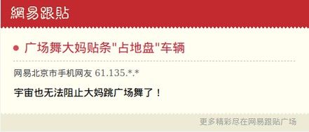 ——【大妈为在小区内占地跳广场舞,贴条阻止业主停车一事,一度在网上引起热议,最近类似的事情再次上演。1月4日晚,江苏常州市一小区广场舞大妈将停在小区商铺门前的车子贴上了警告,语气还略带恐吓。】