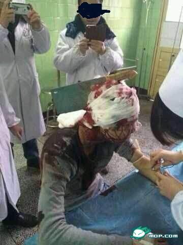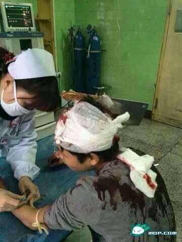 唉!现在的人太冲动了,菜刀砍进脑袋里