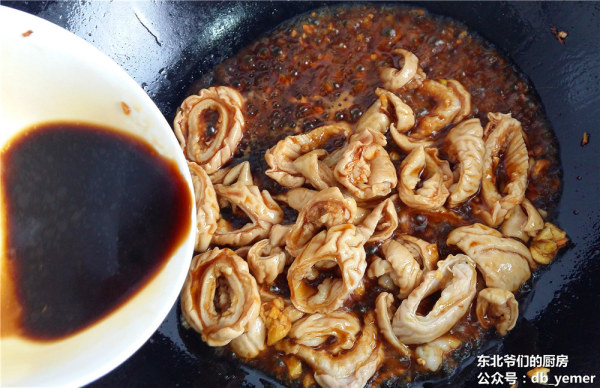 东北溜肥肠也叫尖椒肥肠,口味是咸香鲜辣,菜色鲜艳红亮。爷们做这个喜欢用大量酱油,这样出来的味道更厚重。