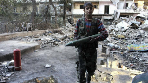 叙利亚阿勒颇,只有13岁的男孩穆罕默德加入叙利亚反对派武装叙利亚自由军与政府军作战。