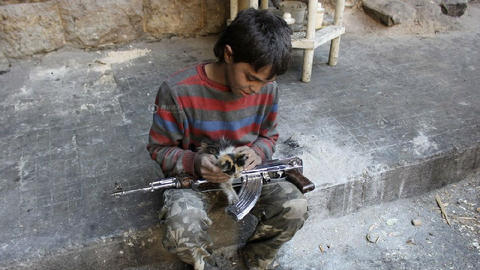 在叙利亚连年的内战中,不少孩子被卷入到残酷的战争中。