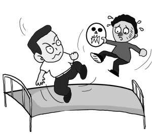 11月1日是西方的万圣节,王某和室友杨某狂欢完后都有些醉意,回到家后王某还搞怪,拿出鬼面具吓唬杨某,迷糊的杨某惊吓中一脚踹到了王某鼻子上,导致其鼻梁骨折。