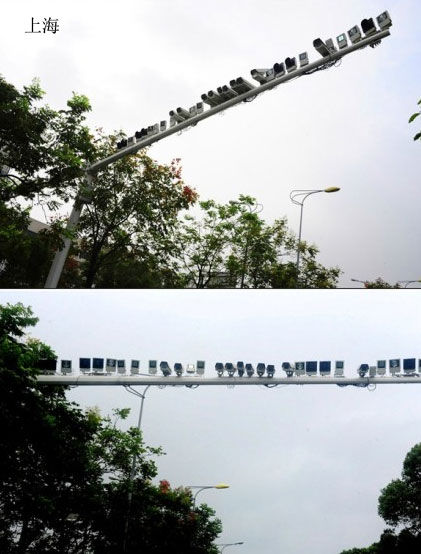 ——【继北京出现“葡萄串式”探头后,上海市也出现“麻雀阵”探头:一根杆子上装了近60只探头。杆子上,密密麻麻的探头就象麻雀排在杆子上,惊呆路人。市民、司机则说。】