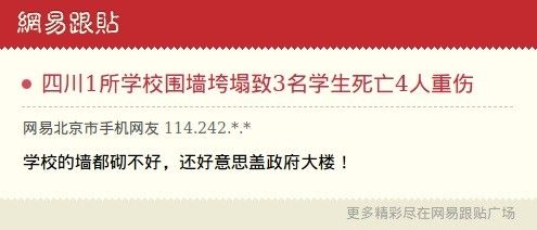 ——【昨天下午,四川泸州市一乡镇小学围墙发生垮塌,致多名学生受伤。据初步了解,目前有9名学生被送往医院,其中3名死亡,4名重伤。对于事故原因,以当地居民猜测道。】