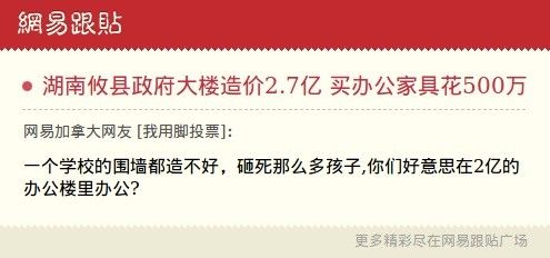 ——【近日,有网友发布一组湖南攸县新建的豪华政府大楼组图。经查证,这些名为“发展中心”的建筑群共一栋主楼、四栋副楼和一个空旷庞大的喷泉广场。总建筑面积约10万平方米,总投资2.7亿元,买窗帘花费182万,买家具花费498万余元。对如此奢华的政府大楼,该贴网友形象比喻道。】