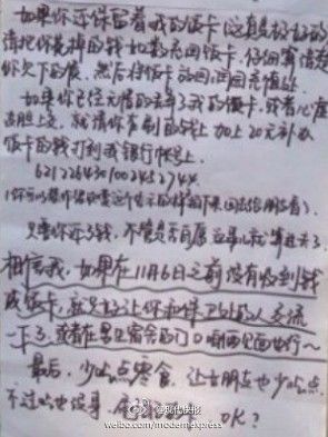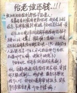 ——【近日,南京审计学院一位女生丢失的饭卡被一位男同学捡到,对方两天刷了近百元,这位女生一气之下,写了长达3页的告示,张贴在学校,警告这名男同学归还饭卡,字里行间充满霸气。】